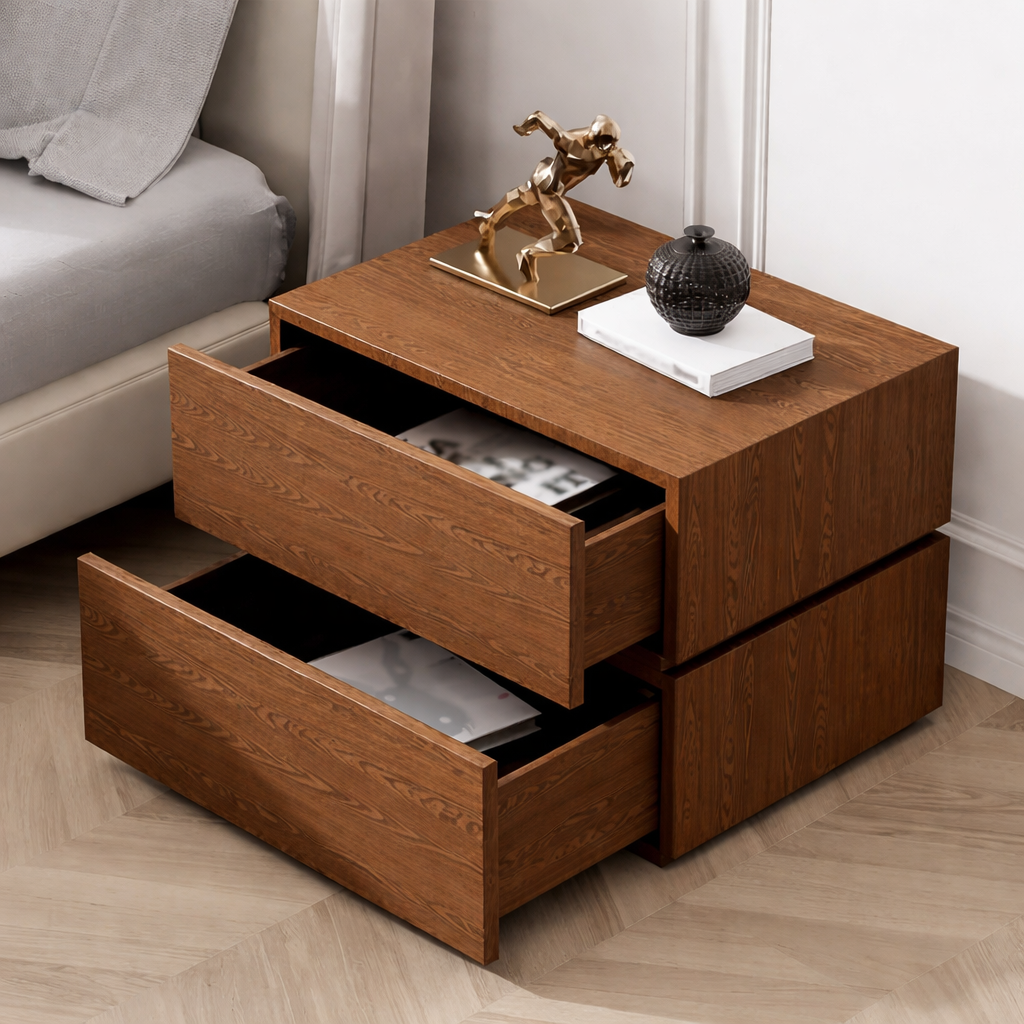 طاولة السرير الجانبية آردن قطعة عصرية بسيطة، مصممة لمظهر أنيق وراقي. مصنوعة من خشب MDF متين، تتميز بدرجين بدون مقابض بتصميم أنيق وبسيط، مما يوفر مساحة تخزين أنيقة مع الحفاظ على جمالية متناسقة. سطحها العريض يجعلها مثالية لغرف النوم الكبيرة، مما يضفي لمسة عصرية جريئة على مساحتك.