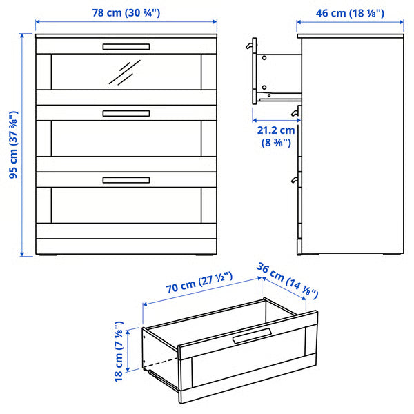 خزانة أدراج بريملوك بثلاثة أدراج 78×46×95 سم