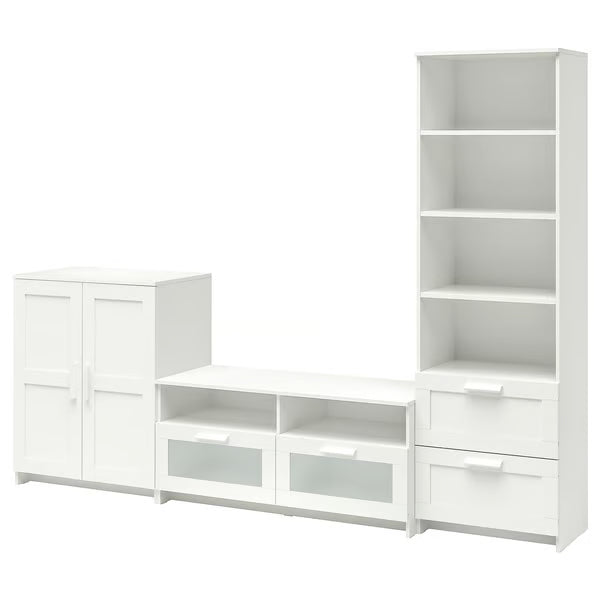 يوفر حامل التلفزيون المعياري من بريملوك مساحة تخزين مرنة بفضل خزانة صغيرة، ووحدة تحكم واسعة، ورفوف مفتوحة عالية. تتميز الوحدة الجانبية الصغيرة بأبواب مزدوجة لتخزين أغراضك بشكل أنيق، بينما توفر وحدة التحكم الرئيسية مساحة مفتوحة للتلفزيون محاطة بأدراج ذات واجهات زجاجية شفافة لحفظ مستلزمات الوسائط المتعددة. يعلو هذا التصميم وحدة رفوف طويلة قابلة للتعديل، مما يزيد من المساحة الرأسية المتاحة للكتب أو الديكور أو مكبرات الصوت في أي ركن ترفيهي.