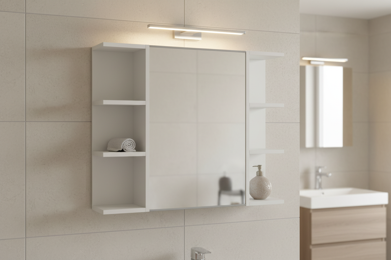 وحدة رفوف حمام ليلي مع مرآة – 80×20×60 سم