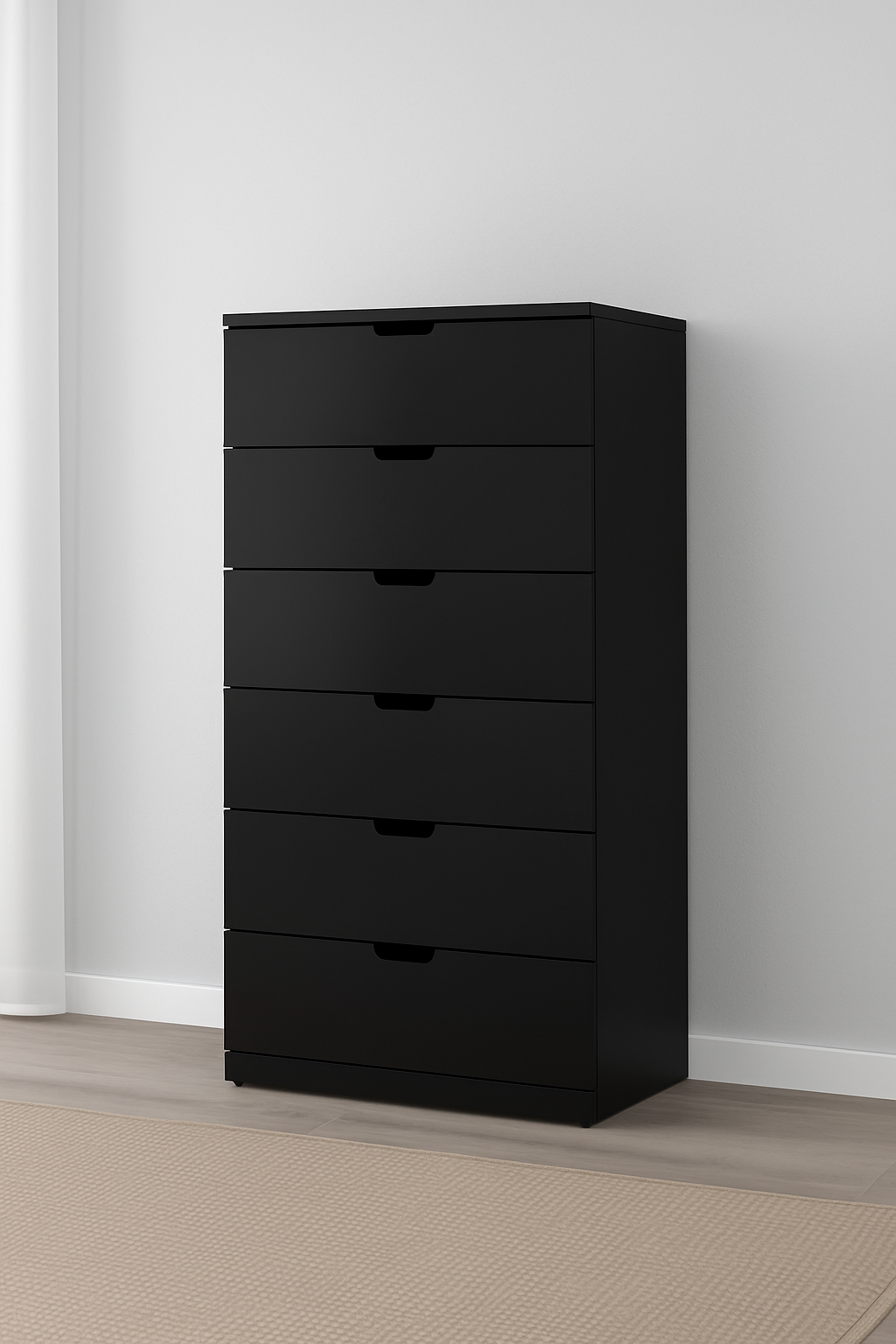 خزانة MDF سوداء 6 أدراج - 80 سم × 42 سم × 146 سم.