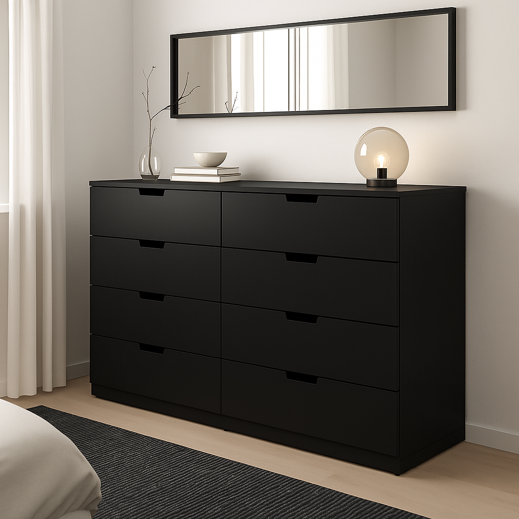 خزانة MDF سوداء 8 درج - 160 سم × 42 سم × 97 سم.