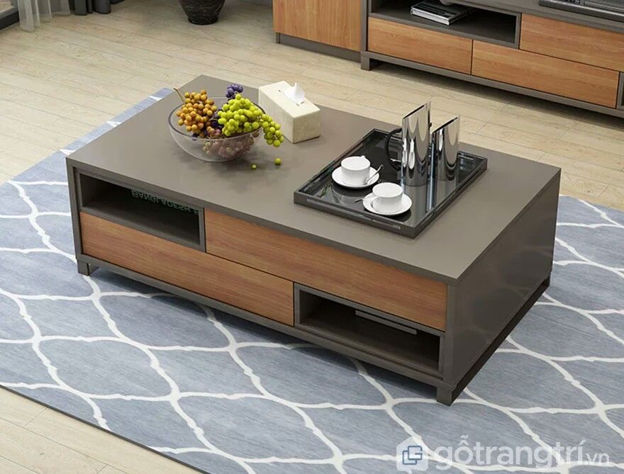 طاولة مركزية نورفيا باللون الرمادي الداكن والخشب - 100 × 60 × 40 سم