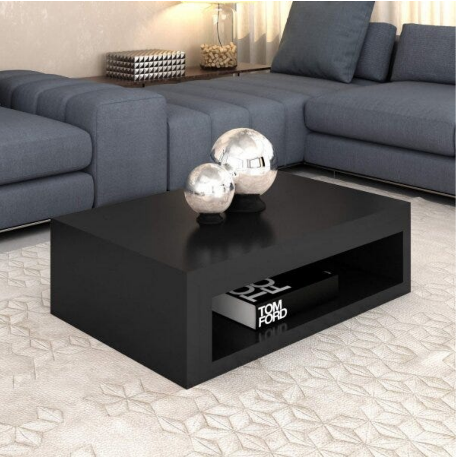 طاولة مركزية سوداء من زيورا مع رف مفتوح - 80×50×25 سم